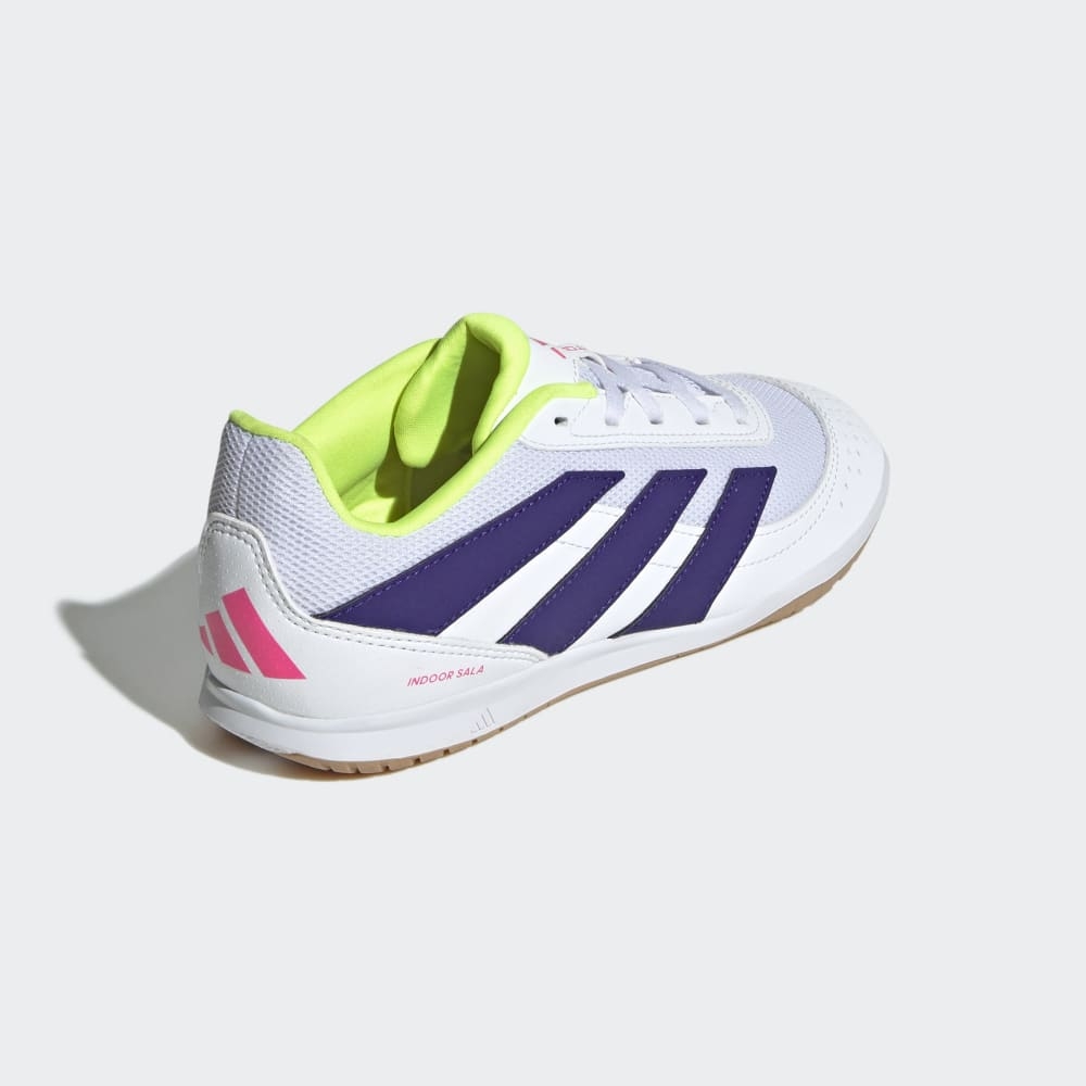 Comienza cada partido sabiendo que perforarás la portería con esta zapatilla de fútbol adidas Predator Club para jóvenes promesas. Su empeine de malla transpirable con refuerzos de TPU favorece la ventilación en los momentos más intensos del encuentro, mientras que el suave forro textil envuelve el pie en confort. Su suela de goma no deja marcas y te permite desplegar tu juego más arrollador en pista cubierta.
