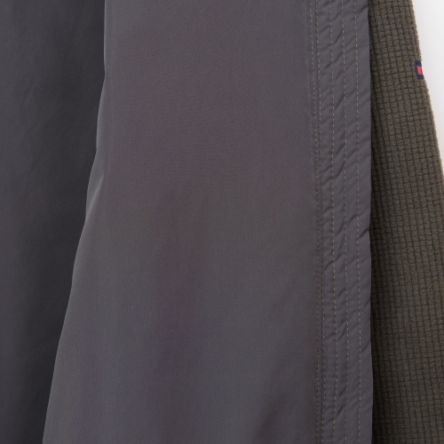 Chaqueta para hombre con cuello recto, diseñada con un atractivo mix de tejidos que combina estilo y funcionalidad. Las mangas y los paneles laterales están confeccionados en tejido polar texturizado, cálido y suave al tacto, mientras que el delantero y trasero presentan un acabado en nylon estilo plumífero, que aporta ligereza y un look técnico. Incluye dos bolsillos discretamente integrados en los cortes frontales y cierre delantero con cremallera, que refuerzan su carácter práctico y urbano.