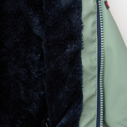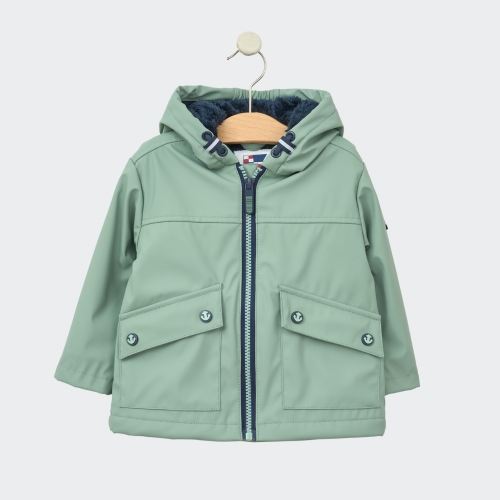 Este chubasquero para bebé está diseñado para proteger a los más pequeños del frío y la lluvia con total comodidad. Confeccionado en tejido impermeable, cuenta con un forro interior de pelo suave, ideal para mantener el calor. Incluye bolsillos delanteros con cierre de corchetes decorados con anclas, un detalle náutico encantador. El cierre frontal con cremallera garantiza un ajuste práctico y seguro, mientras que las mangas incorporan puño interior, pensado para ofrecer mayor abrigo y evitar la entrada del agua.