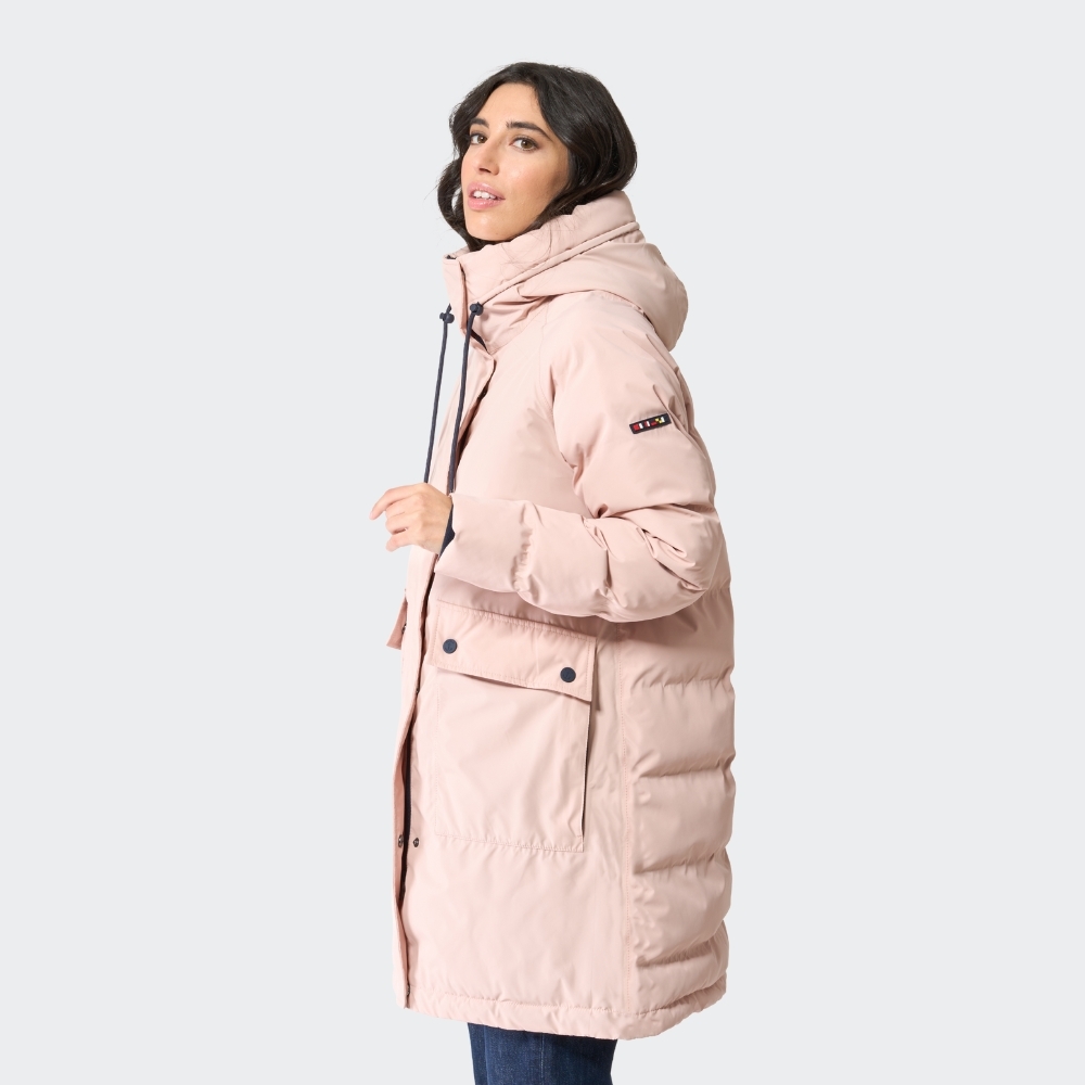 Este abrigo impermeable acolchado 100% impermeable de mujer, te acompañará en los días más fríos del invierno. Confeccionado en tejido de poliéster reciclado, cuenta con una capa aislante transpirable y sin plumas para ayudar con la ventilación en las largas caminatas. Tiene bolsillos plastrón con solapa y cremalleras impermeables en los laterales.