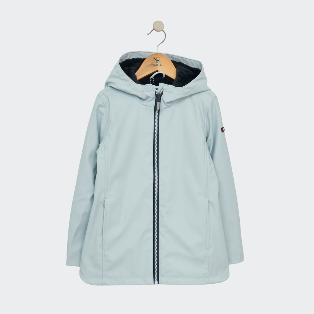Chubasquero infantil confeccionado en poliuretano impermeable, con cierre de cremallera y un forro interior de pelo suave en color de contraste con el exterior, pero a tono con la cremallera, creando un acabado armonioso y original. Cuenta con bolsillos laterales con cremallera, forrados en forro polar para mayor confort y calidez. Incluye pequeñas aperturas laterales en el bajo, que facilitan el movimiento y aportan mayor comodidad durante el juego o el paseo. Una prenda práctica, cálida y resistente, pensada para los días fríos y lluviosos con el estilo inconfundible de Batela.