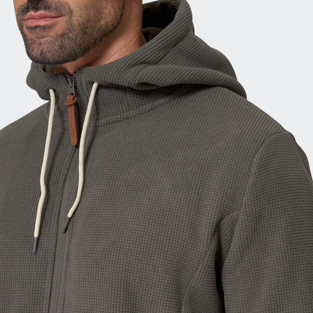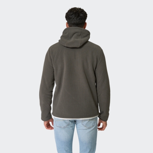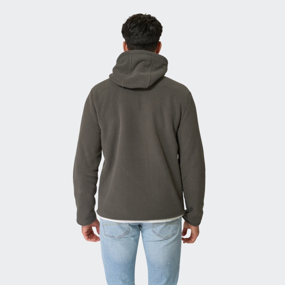 Chaqueta confeccionada en un cálido y suave tejido polar texturizado, ideal para mantener el confort térmico en los días fríos. Cuenta con capucha ajustable mediante cordones, cierre frontal con cremallera y dos bolsillos integrados en los cortes del delantero, que mantienen el diseño limpio sin renunciar a la practicidad.