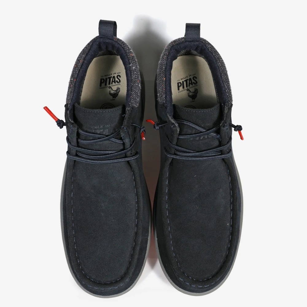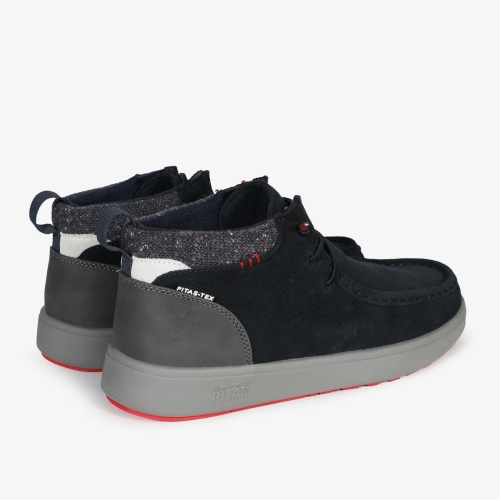 Corte en serraje hidrofugado repelente al agua con talonera de PU nobuck.
