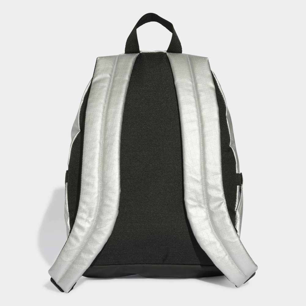 Esta mochila adidas está hecha para brillar, literalmente. El logotipo metalizado de las 3 barras capta la luz mientras te mueves, y el duradero tejido ripstop de poliéster resiste el uso diario. Guarda tus básicos en el compartimento con cremallera y ajusta las correas a tu gusto.