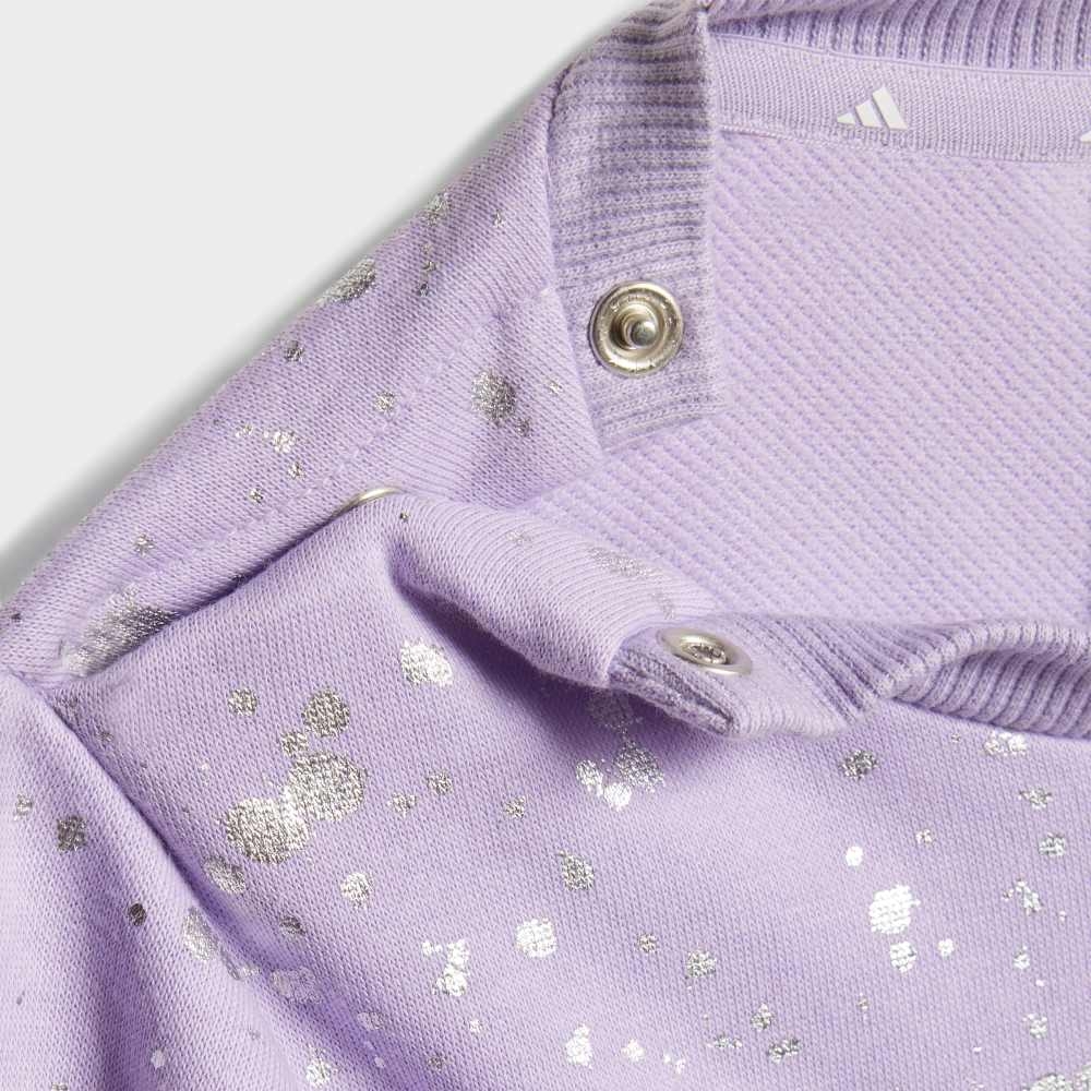 Prepara a tu peque para cualquier aventura con este conjunto adidas adorable y cómodo. El suave jersey de felpa y las mallas elásticas son perfectas tanto para los juegos más animados como para echar una cabezadita. Incorpora detalles metálicos que aportan un toque de brillo.