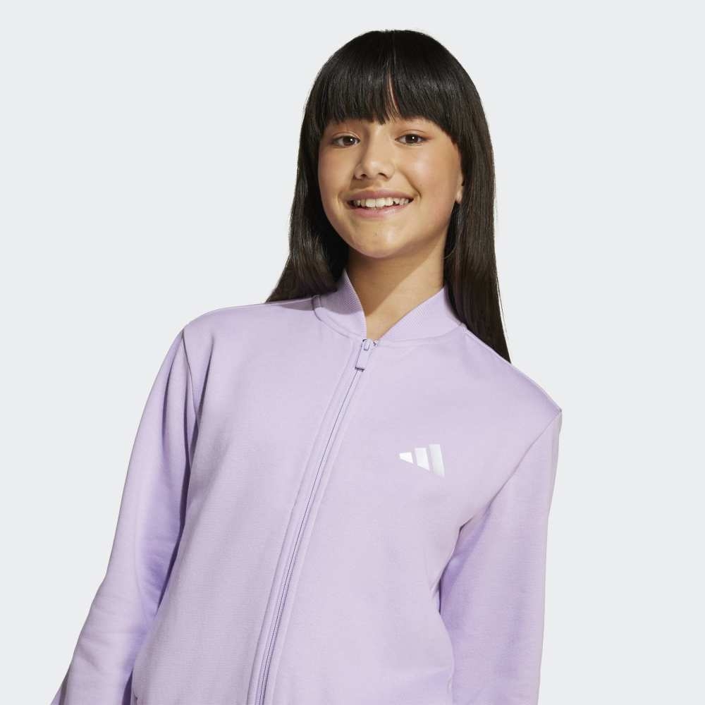 Este chándal adidas para adolescentes une la comodidad y el estilo. Está confeccionado con un tejido suave y cálido, que ofrece confort tanto para relajarte en casa como para salir a hacer recados. La chaqueta incorpora un cuello alzado, que aporta un aire elegante, y bolsillos para que guardes tus artículos personales. Los pantalones tienen un look deportivo clásico gracias a las 3 bandas en las perneras. Incorpora logotipos metalizados, que dan un toque de glamour.
