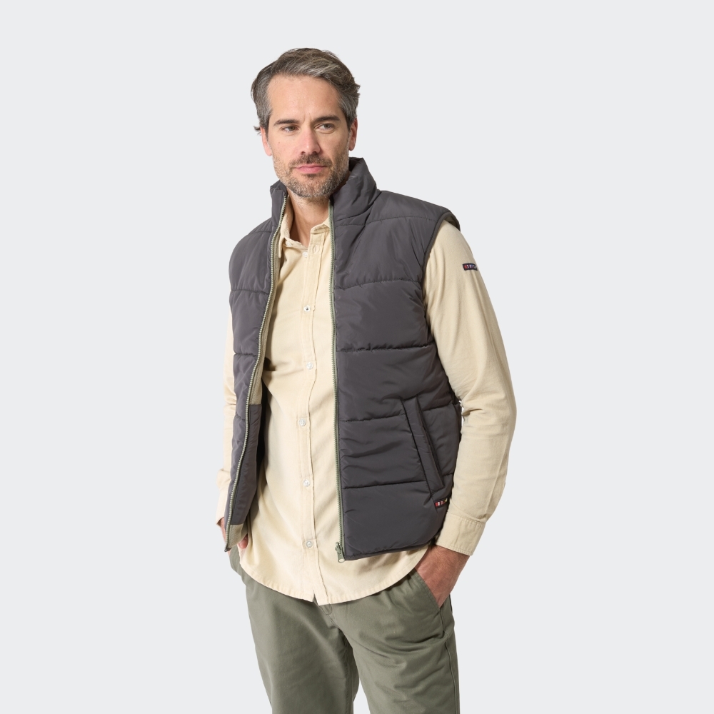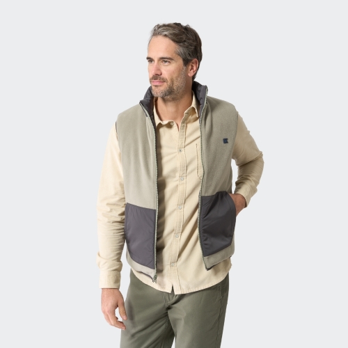 Chaleco polar para hombre reversible. Por un lado es de forro polar con bolsillos plastón y cuello a contraste en nylon, y por el otro lado es completamente de nylon con dos bolsillos vivo. Prenda versátil que te ofrece dos looks muy distintos.