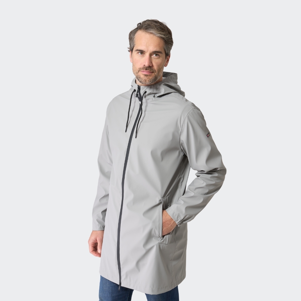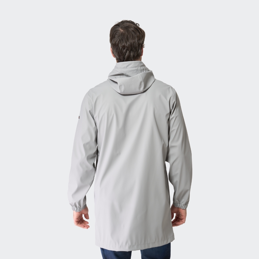 Chubasquero de entretiempo para hombre, confeccionado en tejido impermeable de poliuretano, ideal para protegerte de la lluvia y el viento durante los días templados de otoño. Diseño ligero sin forro interior, que permite una mayor transpirabilidad y facilidad de movimiento. Cuenta con cierre frontal de cremallera de doble cursor impermeable, que refuerza la protección frente a la humedad. Incorpora una capucha ajustable, puños con acabado elástico y bolsillos laterales funcionales. Su acabado mate y minimalista lo convierte en una prenda versátil, perfecta tanto para looks urbanos como para escapadas al aire libre.
