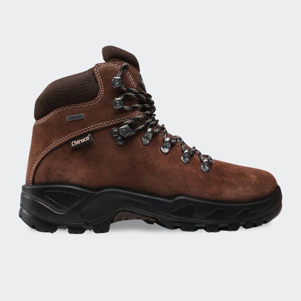 Una bota de piel serraje hidrofugada, cordura hidrofugada, membrana Gore-Tex impermeable y transpirable piso bidensidad con entresuela de poliuretano expandido y patín de poliuretano Trail que ofrece comodidad y amortiguación.