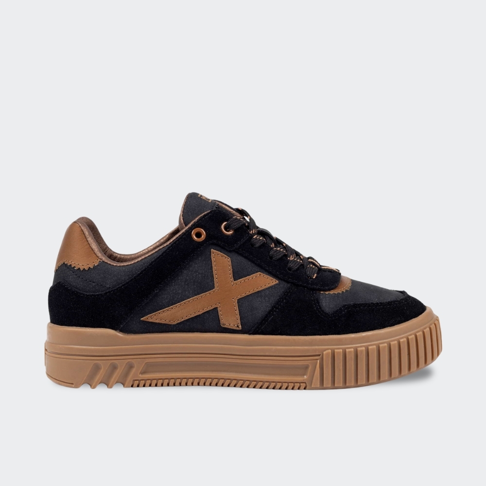 Zapatilla look joven, suela con volumen, pero de caucho, para que mantenga flexibilidad. Corte con base de microfibra. Espuma extra en el acolchado y la lengueta para dar más comodidad.