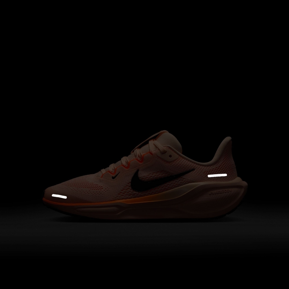 No hace falta que corras a velocidad máxima para sentir los beneficios de las Pegasus 41. La cámara Zoom en el talón añade un toque reactivo mientras corres el patio para pillar a todos tus amigos. Ahora bien, si simplemente quieres llegar más lejos, las Peg te ayudarán en cualquier carrera larga. La espuma bajo los pies se adapta a tu ritmo y mantiene la estabilidad, mientras que la parte superior de malla mantiene la frescura para que puedas darlo todo en cada carrera.