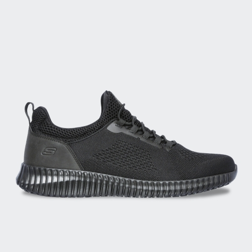 La comodidad y la protección se combinan en la Skechers Work ™Relaxed Fit®: Cessnock SR. Modelo con parte superior de malla Skech Knit con cordones elásticos, plantilla Skechers Air-Cooled Memory Foam® con amortiguación y suela antideslizante.